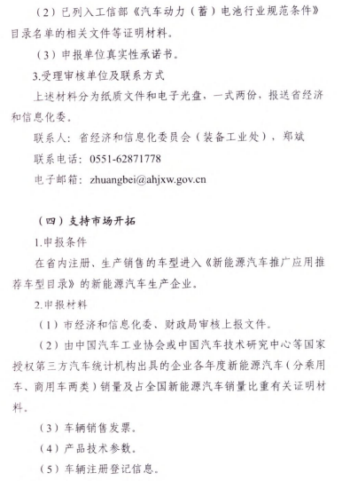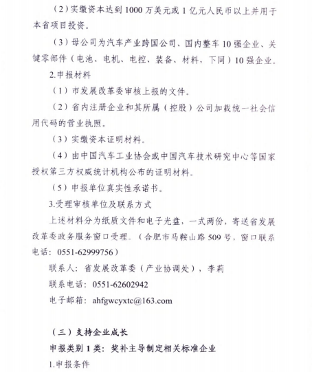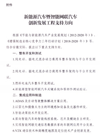 安徽支持新能源汽车产业创新发展3月16日,合肥高新区科技局转发《关于做好支持新能源汽车产业创新发展和推广应用若干政策有关工作的通知》,要求相关企业按照通知中《支持新能源汽车产业创新
