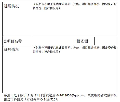 3月16日,合肥高新区科技局转发《关于做好支持新能源汽车产业创新发展和推广应用若干政策有关工作的通知》,要求相关企业按照通知中《支持新能源汽车产业创新发展和推广应用政策相关事项申报细则》要求,积极联系市级审核单位,按时提交申报材料并抄送市科技局,并填写附件2,并于3月31日前报送至市科技局。
