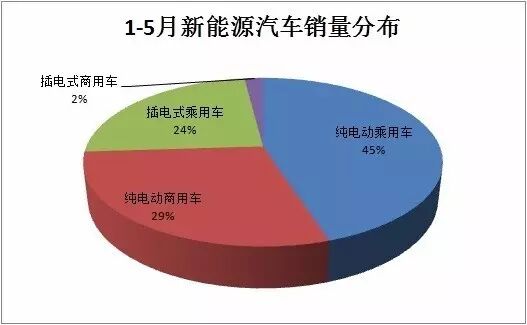 占比方面,基本延续前4月分布,新能源乘用车所占比例达69%,而新能源商用车仅有31%。其中纯电动乘用车和纯电动商用车占比分别为45%和29%;而插电式乘用车和插电式商用车比例稍小,分别为24%和2%。
