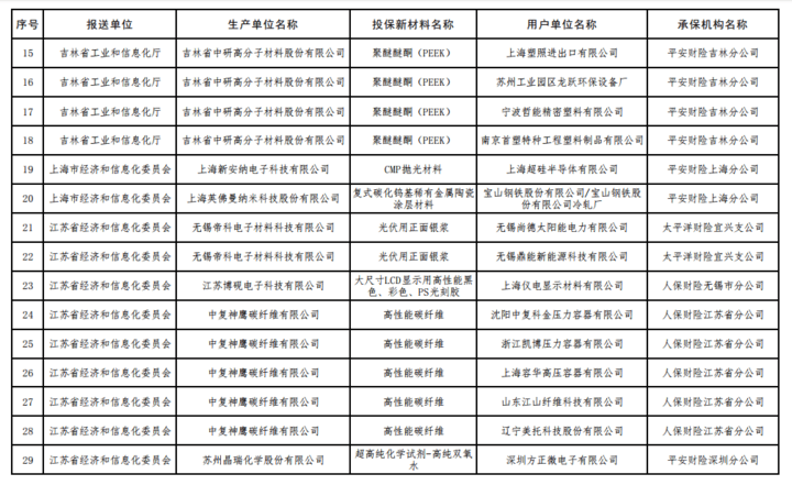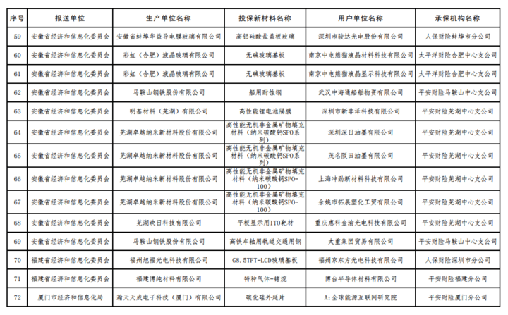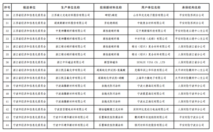 投保新材料涉及镍钴锰酸锂三元材料、碳纤维复合芯导线、高性能锂电池隔膜、电子胶有机硅材料、负极材料、电子浆料、高纯晶体六氟磷酸锂、碳化硅外延片、高性能碳纤维等,报送和生产单位共计244家。