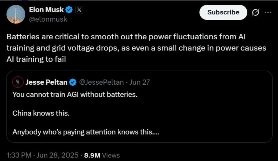 2、储能技术倒退法案对电池储能加税,直接打击特斯拉、宁德时代美国工厂的扩建计划。要知道,AI 训练中哪怕 0.1 秒的电压波动都可能导致模型崩溃,而电池是稳定电网的关键;3、科技竞争力流失中国正以每年新增 100GW 光伏的速度构建能源优势,当美国数据中心因电价高企迁离本土,AI 竞赛的天平将彻底倾斜。正如 Jesse Peltan 所言"没有电池就无法训练 AGI,中国深知这一点。"