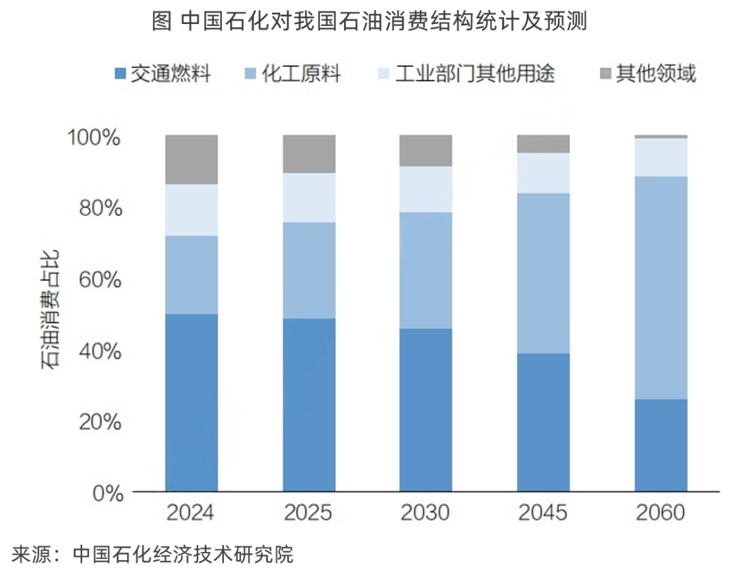 石油不仅仅是作为能源使用,而且是重要的化工原料。根据中国石化的数据,2024年国内石油消费超过7.5亿吨,其中交通燃料占56%、化工原料占22%。