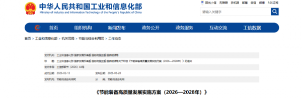 工业和信息化部、国家发展改革委、国务院国资委、国家能源局近日联合印发《节能装备高质量发展实施方案(2026—2028年)》。从文件名看,这似乎又是一份鼓励企业采购高效设备的常规文件。但细读全文会发现,政策的着力点已经发生明显位移——从单纯的设备能效提升,转向更为复杂的系统匹配、数据赋能和全生命周期管理。