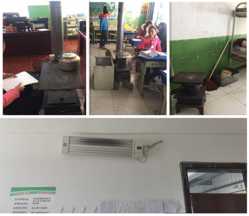 据当地志愿者团队介绍,早年间教室、办公室、宿舍均为火炉明火取暖,燃料为燃煤和牛粪混用。2016年当地教育部明确提出严禁北方地区中小学校宿舍使用明火取暖。所以学校改用了“小太阳式”的照明采暖设备,但因长期频繁启用,导致采暖设备老化、设施损毁严重,冬季无法正常供暖。此外,因旧有设备受热不均衡,师生在长期使用后,经常会头痛或出现其他不适的感觉。不仅如此,学校生活用电和采暖用电共用一套系统,接线混乱,存在严重的安全隐患。