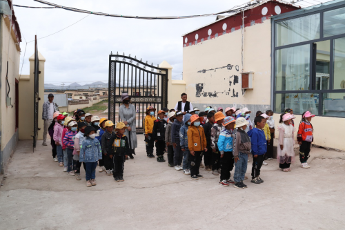 国家电网青海省电力公司玉树供电公司纪委书记扎西东周、国什能源科技有限公司副总经理王超、玉树藏族自治州玉树市教育局局长开周才仁、玉树藏族自治州直属机关团委书记青梅多杰、隆宝镇党委书记格来仁青等一行领导对德吉岭小学的清洁采暖设备进行了逐一验收,并带去了最诚挚的问候。