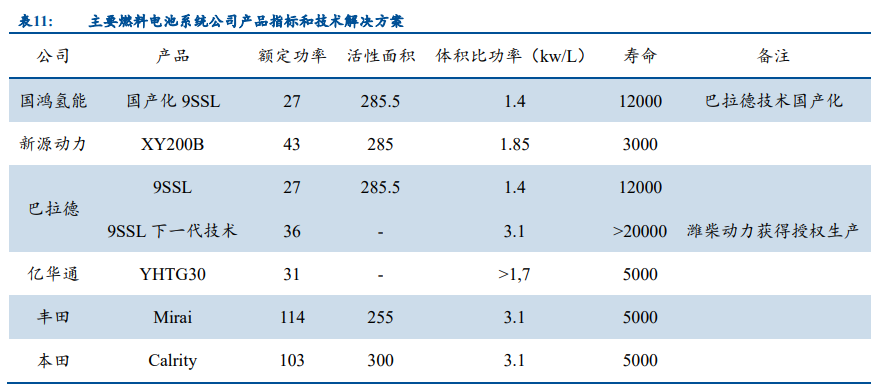 ? 燃料电池:当前燃料电池售价为 800~1000 元/kw。