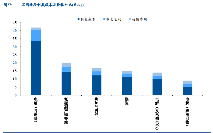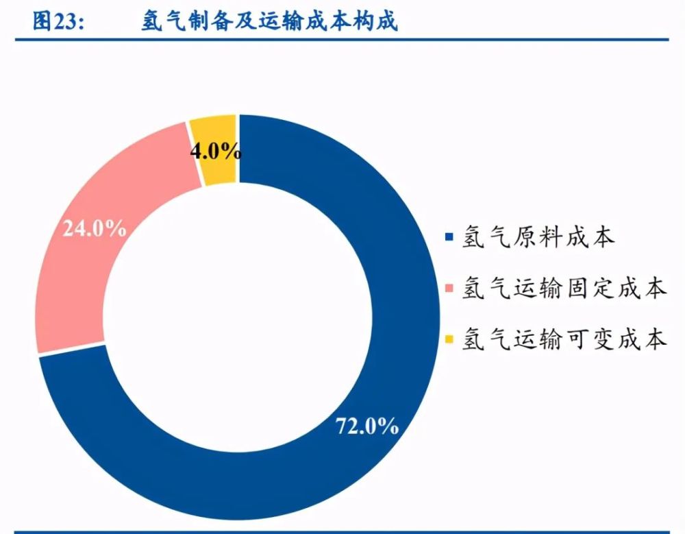 ? 氢气制备:1)当前氢气制备成本在 20-30 元/kg 水平。2)氢气运输成本平均在 2 元 +/kg(200 公里以内)。
