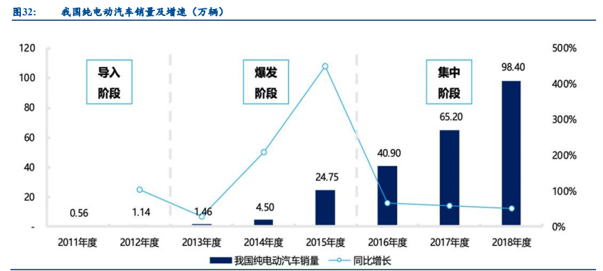 我国纯电动汽车 2009 年开始导入,2013-2015 年迎来爆发增长,燃料电池汽车有望复制 纯电动汽车发展。2009 年,“十城千辆”计划发布,标志着我国纯电动新能源汽车产业化的开 端。在经历了初始导入阶段后,2013 年-2015 年纯电动汽车进入爆发阶段。2013 年纯电动汽 车销量仅 1.46 万辆,2014、2015 年分别实现了 200%和 400%以上的增长,2015 年销量达到 24.75 万辆。目前燃料电池汽车也处于爆发前的导入阶段,未来五年有望迎来爆发临界点。