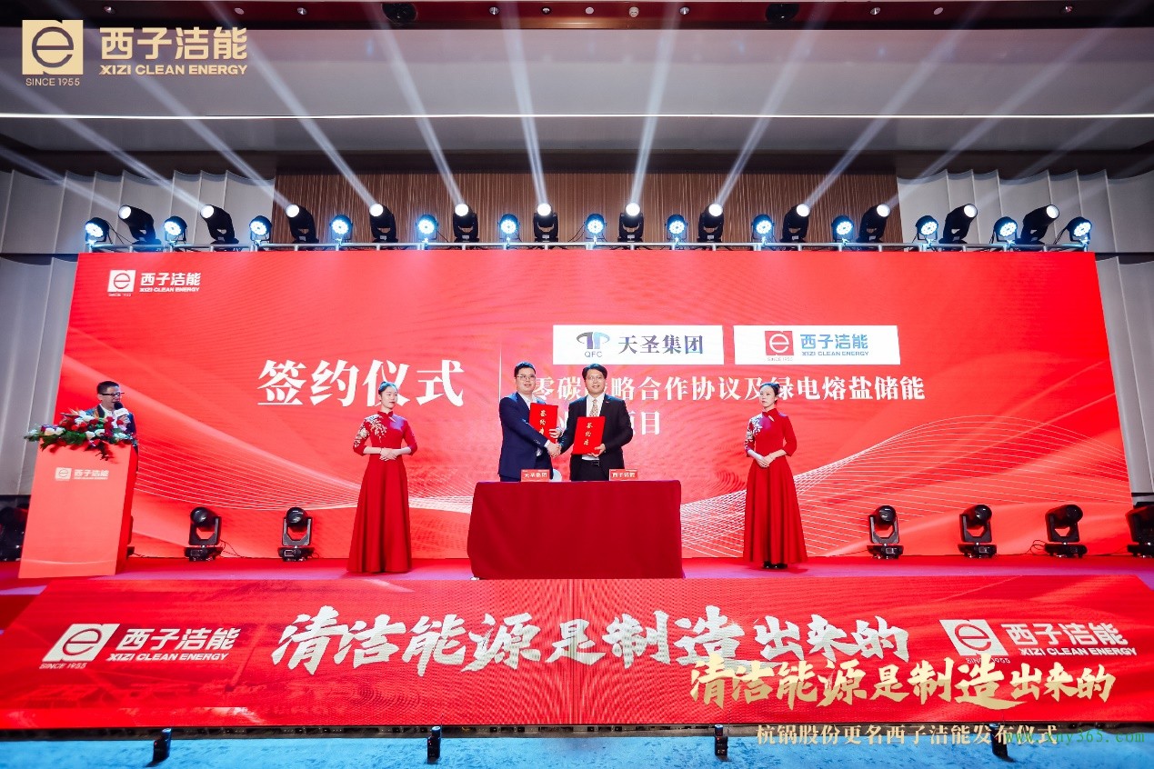 今年3月12日,西子洁能召开更名仪式,完成华丽转身。更名仪式上,西子洁能与绍兴绿电能源有限公司签署了《绿电熔盐储能示范项目承包合同》,这也是继西子航空零碳智慧能源工厂后,公司打造的首个绿色零碳产业园项目,将实现零碳产业商业应用“零”突破。