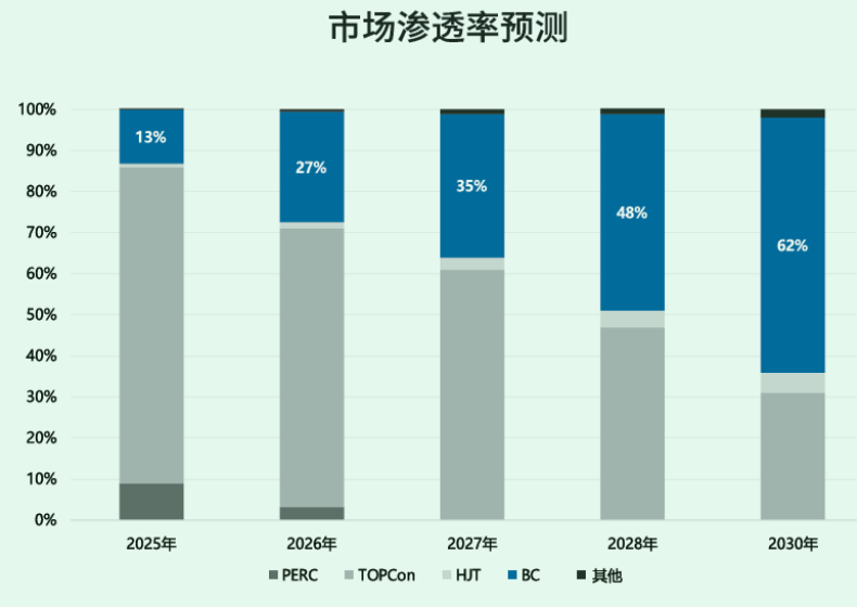 早在2023年9月,赶碳号就曾写过一篇叫作《BC的假想敌》,提出我们或许不能把BC和TOPCon完全对立起来谈,因为BC是一个平台型技术,TOPCon、HJT、PERC都能与BC结合。正如白皮书所说,“BC技术本质上是一种电极工程平台,可与主流电池技术形成复合增效方案,当前以TBC为主要结构的BC技术已经全面量产,其它BC技术也在推动量产过程中。”