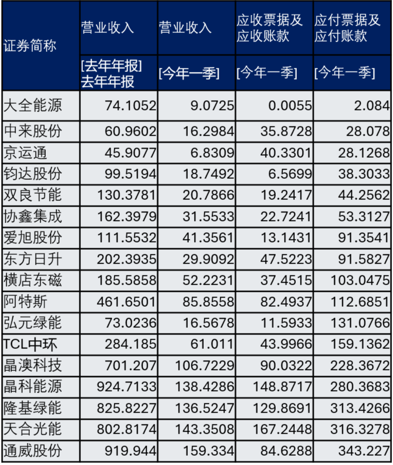 应付票据及应付账款超过300亿的企业,有通威股份、天合光能、隆基绿能3家。这说明他们比较有优势,也说明作为他们的供应商,特别是辅材、设备企业资金压力不会小。供应商们和龙头企业合作,虽然会有应收款,但毕竟相对安全啊,有溢价啊,不像润阳或者即将倒掉的那些中小企业,货款都拿不回来。