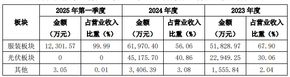 公告显示,2024年棒杰股份光伏板块营收占比为40.86%,2025年第一季度光伏板块营收已为零。