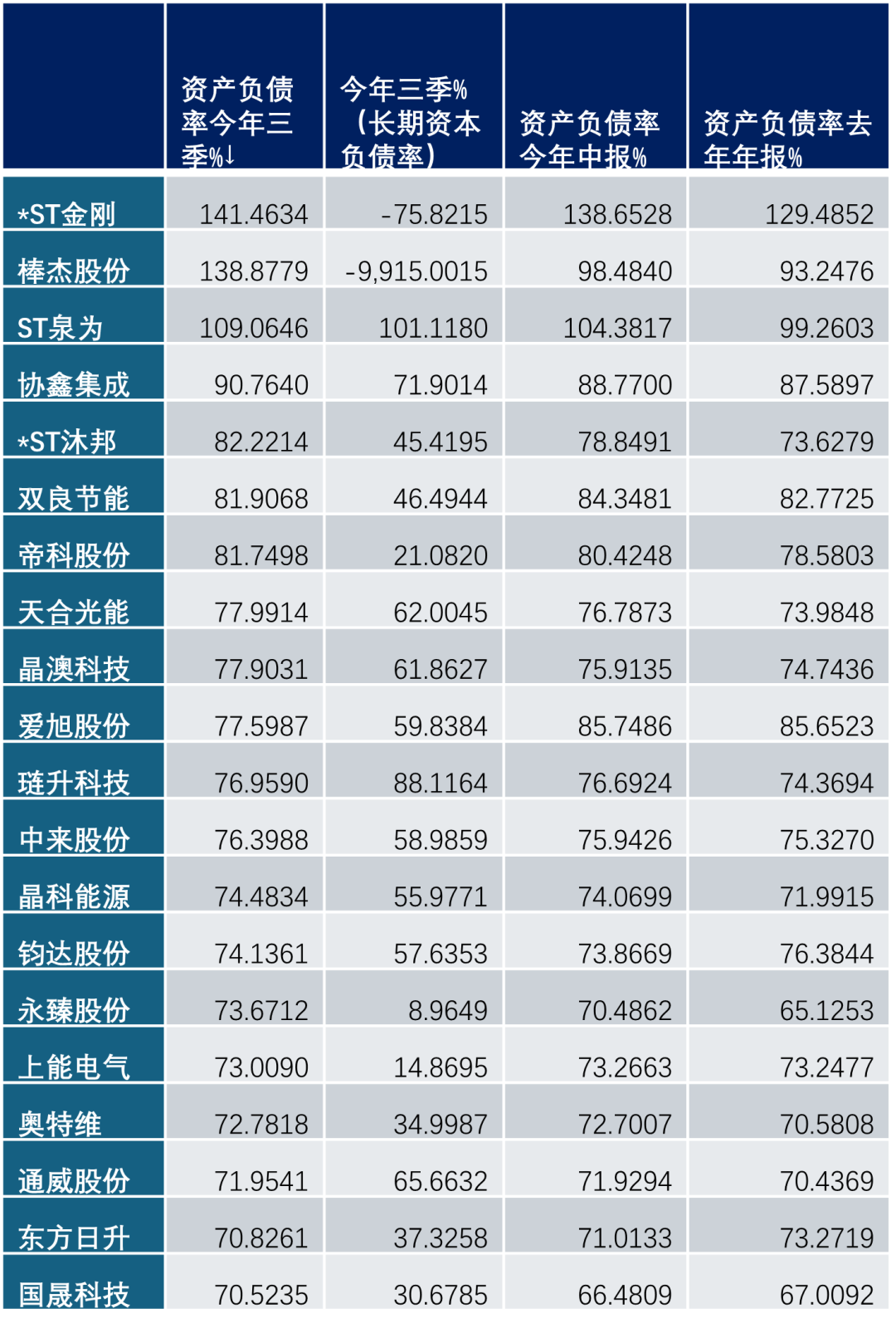 现在至少有20家企业的资产负债率超过70%,且多数企业的负债率仍然在上升。一般情况下,我们把70%作为警戒线。