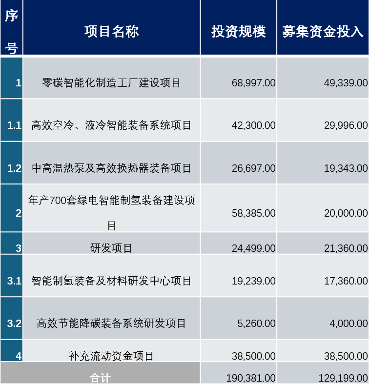 今年10月23日,双良节能发布公告,拟定增募资不超过 12.92 亿元(含本数),其中就包括“年产700套绿电智能制氢装备建设项目”、“智能制氢装备及材料研发中心项目”。