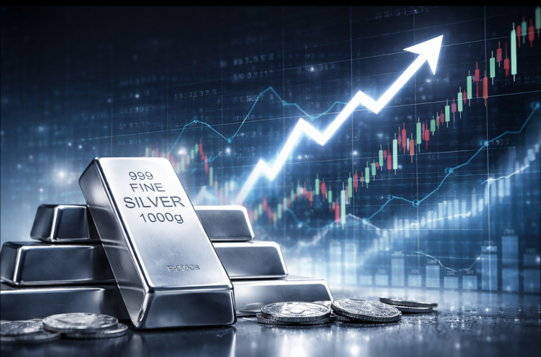 2026年初银价在2025年出现历史性上涨——以现货白银(伦敦银现)计,从年初约29美元/盎司上行至年末约71.6美元/盎司,全年累计上涨约147%,年内一度触及80美元/盎司上方。