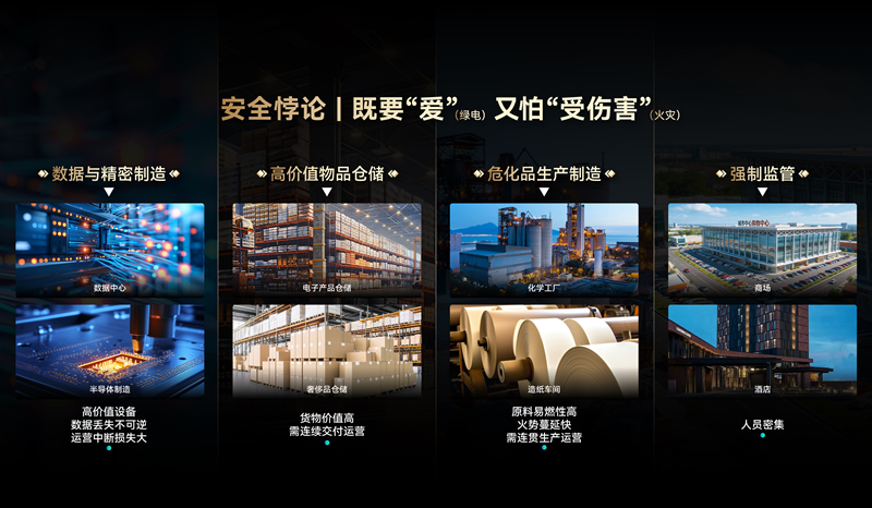 这当然不是孤例,细数光伏高危应用场景,锂电池工厂、精密制造车间、危化品生产制造、数据中心……个个都是能耗大户,却被集体困在一个“安全悖论”中他们迫切需要安装光伏降低用能成本,又对危及资产隐患抱有“零容忍”的恐惧。